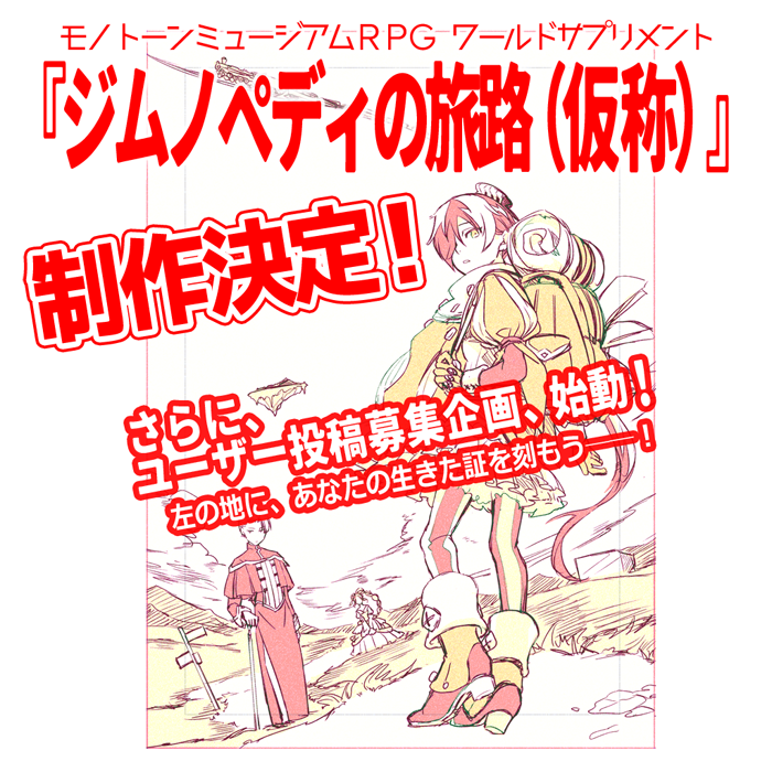 ・ご投稿頂いたアイデアは、『ジムノペディの旅路(仮称)』および今後の『モノトーンミュージアム』関連コンテンツに採用される可能性があります。